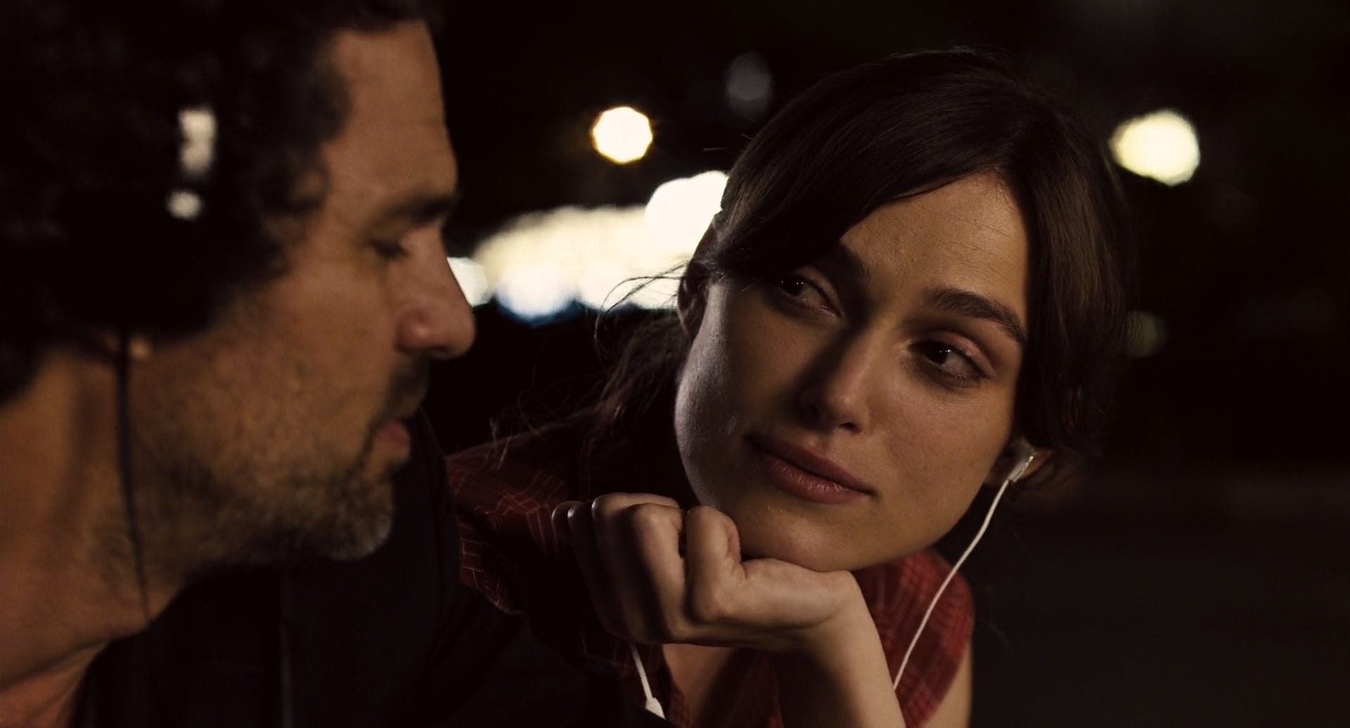 He just needs a friend—and finds one. Stumbling into an East Village bar one night, Dan finds Gretta at the mic. She’s bared, fragile, soft-voiced, singing about heartbreak. In the role, Keira Knightley is chic and charming, but not convincingly a standout singer. Her thin voice works for airy bops without ever quite convincing us she'd be an overnight hit in a city filled with singers.